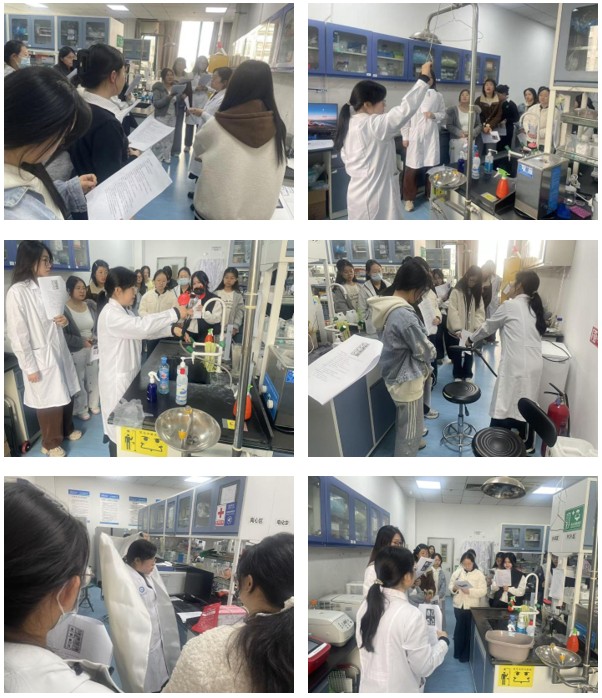 进入专项实操阶段,演练真实还原了实验室紧急情境。现场演示了应急喷淋与洗眼装置的即时启用、标准用法及事后处理流程,确保师生在化学品溅洒等意外中能快速实施自我救护。此外,培训还完整讲授了触电风险的防范手段,涵盖设备接地检测、安全操作规程等内容,并对触电发生后的断电施救、伤员脱离及心肺复苏等急救流程做了逐步说明,构建了从隐患预防到紧急救援的闭环管理体系。